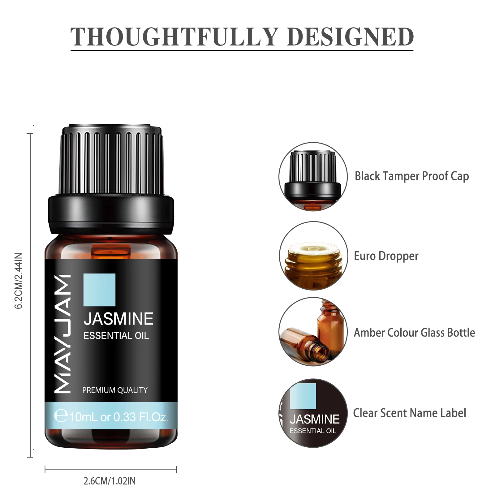10ml Jasmine Essential Oil Diffuser Aroma Oils Lavender Vanilla Vetiver Sandalwood Eucalyptus Mint Tea Tree Oils For Skin Care